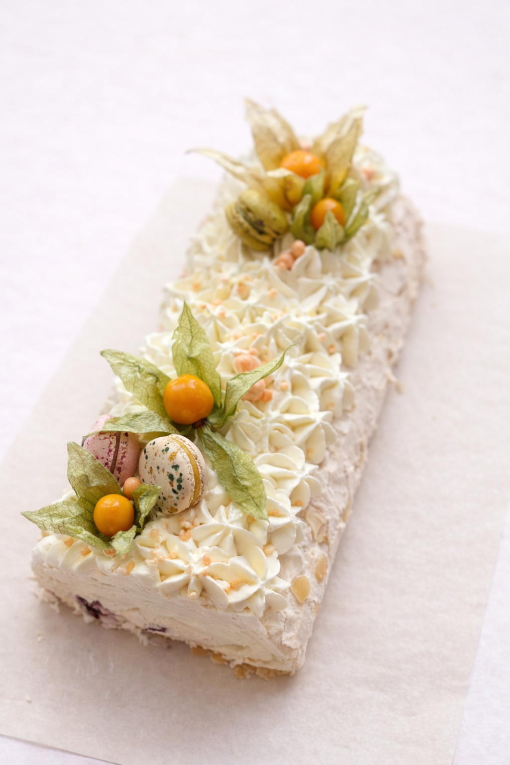 Меренговый рулет — нежный десерт с хрустящей снаружи и воздушной внутри меренгой, дополненный кремом и ягодами. Мы можем оформить его в нужном стиле — аккуратно и эстетично, для подарка или к праздничному столу.